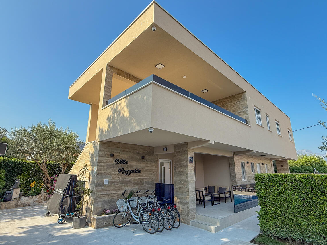 Welcome to a visual tour of Villa Rozzaria, situated in the charming Kaštel Novi between Split and Trogir:Stroll through the sun-soaked terrace, complete with a heated pool and hot tub, perfect for relaxing dips under Dalmatian skiesDiscover our lovely garden retreat, framed by lush greenery and offering serene views—ideal for sipping coffee or enjoying an evening glass of wine.Step inside our modern, air-conditioned interiors, where each of the two bedrooms enjoys Netflix-equipped Smart TVs, and two sleek bathrooms including one spa-style tub offer premium comfort.Cozy up in the living area, featuring a fireplace, a bright yellow sofa, and a flat‑screen TV—perfect for unwinding after a day of sightseeing.Each image highlights the villa's blend of style, comfort and convenience—from outdoor indulgence to interior elegance. Let the pictures spark your imagination for a memorable stay in Dalmatia.
